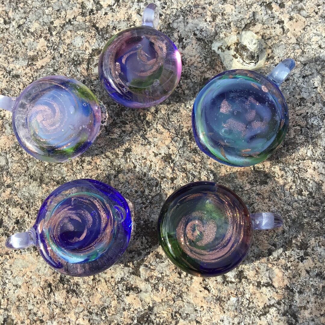 1,000℃に熱せられたガラスを融合させ、金彩で螺旋を表現。