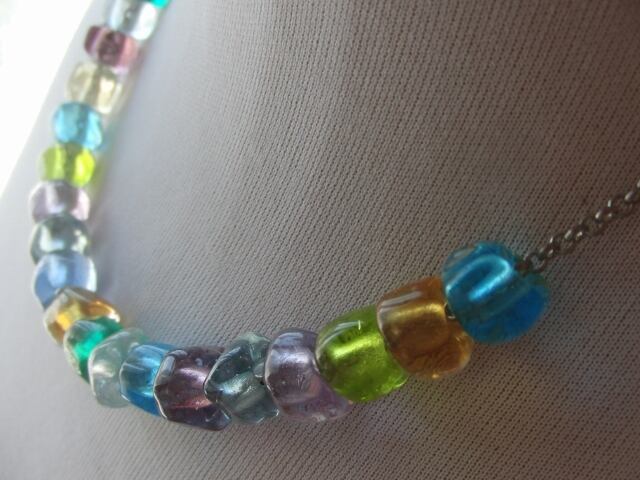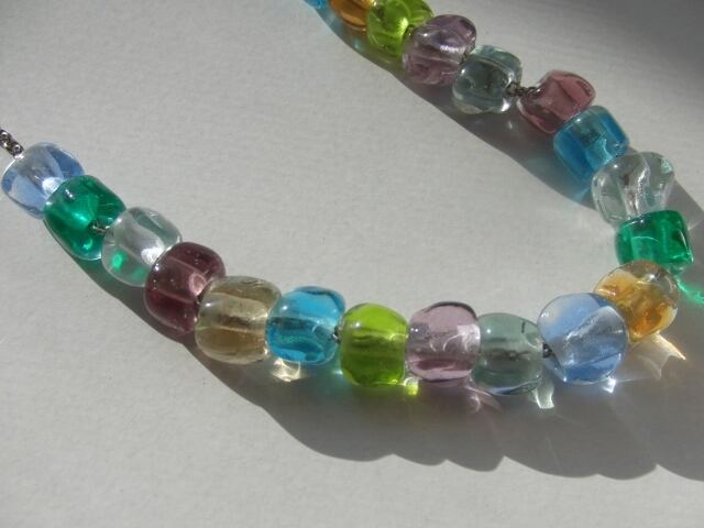 透明の色ガラスにクリアを巻き、ランダムに成形したガラスが、優しく光を取り込んでくれます。