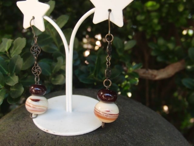 チョコレート色のガラスのピアス。