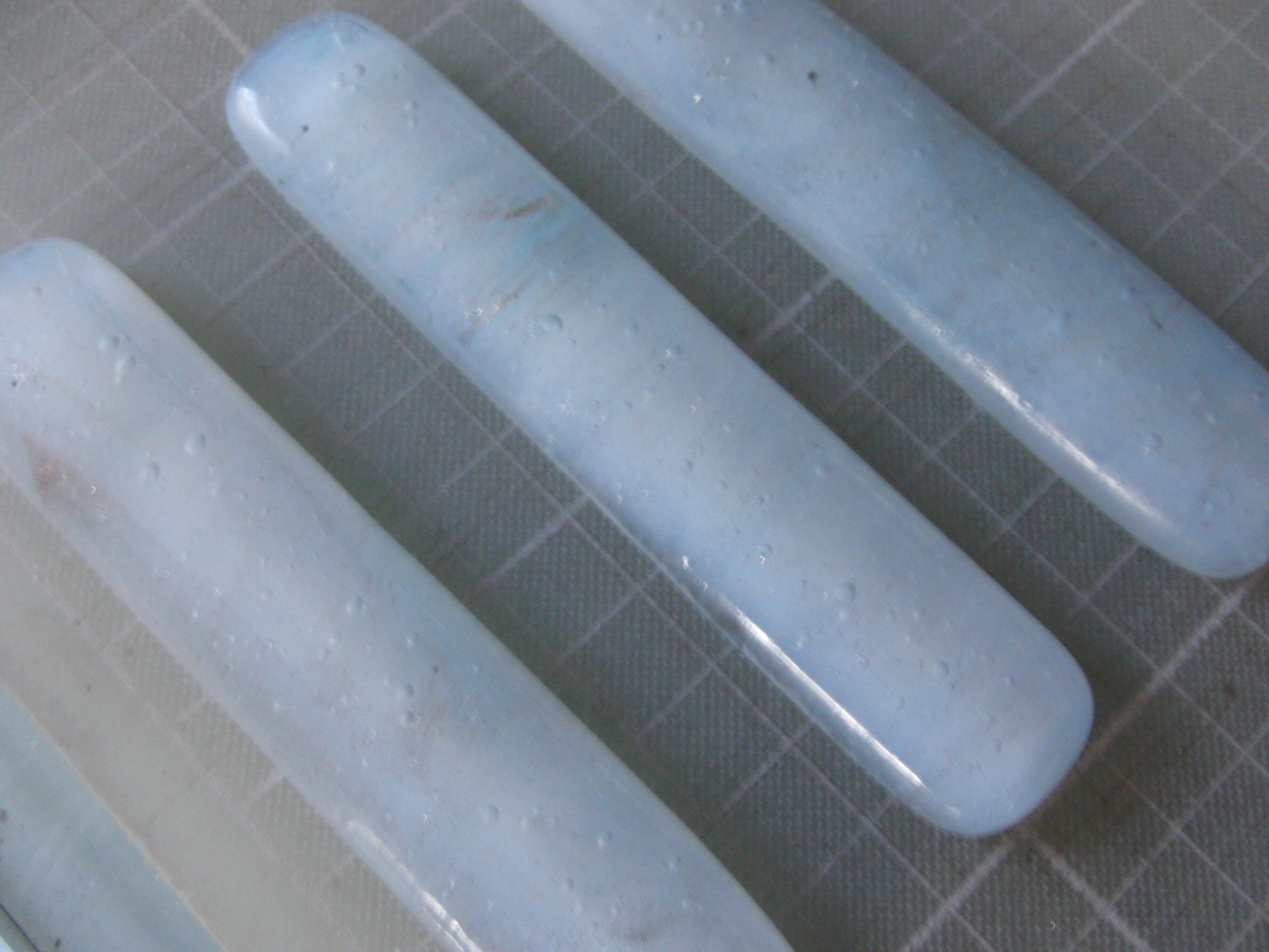 半透明の乳白色ガラスに金彩のガラスを重ねて、キルンワークで仕上げました。